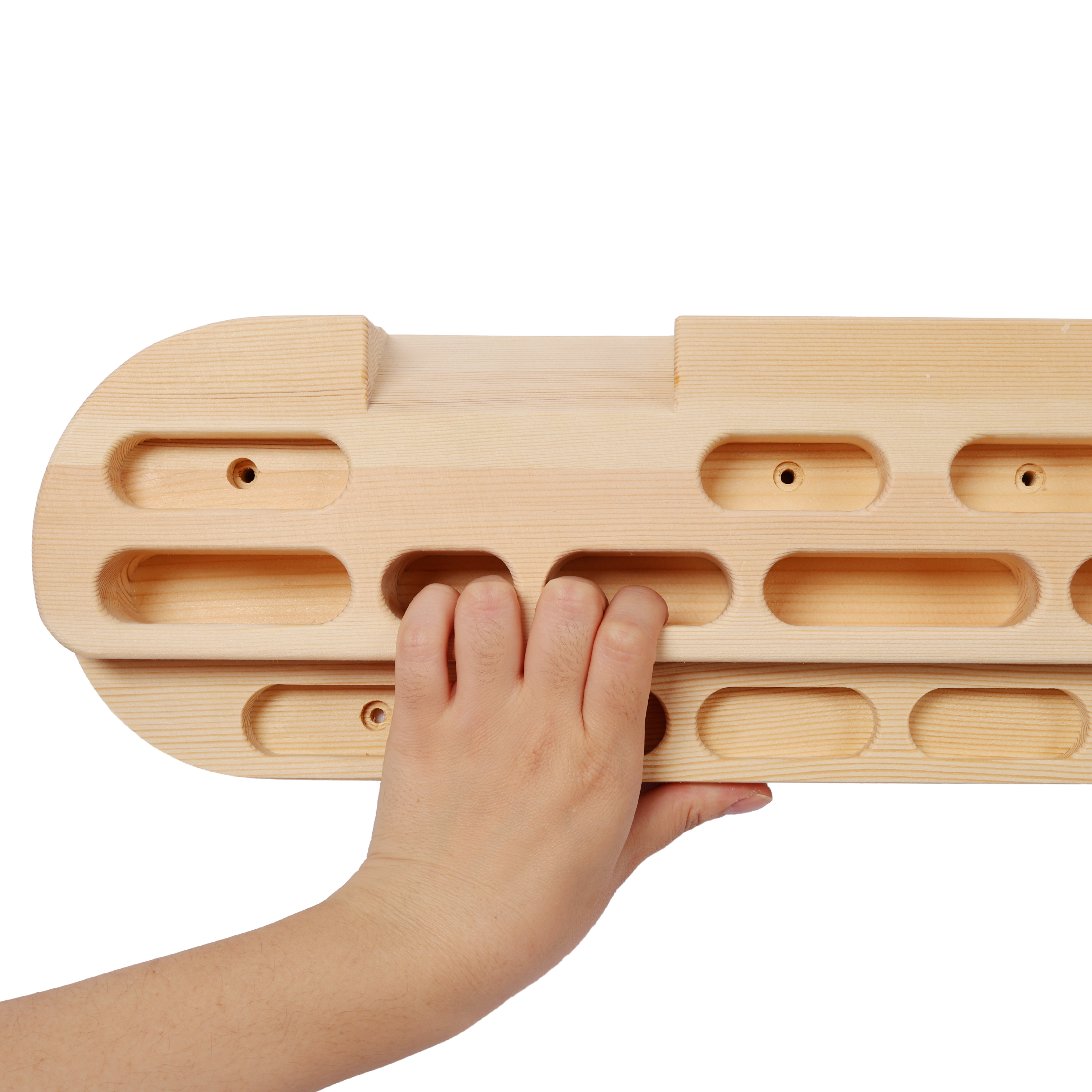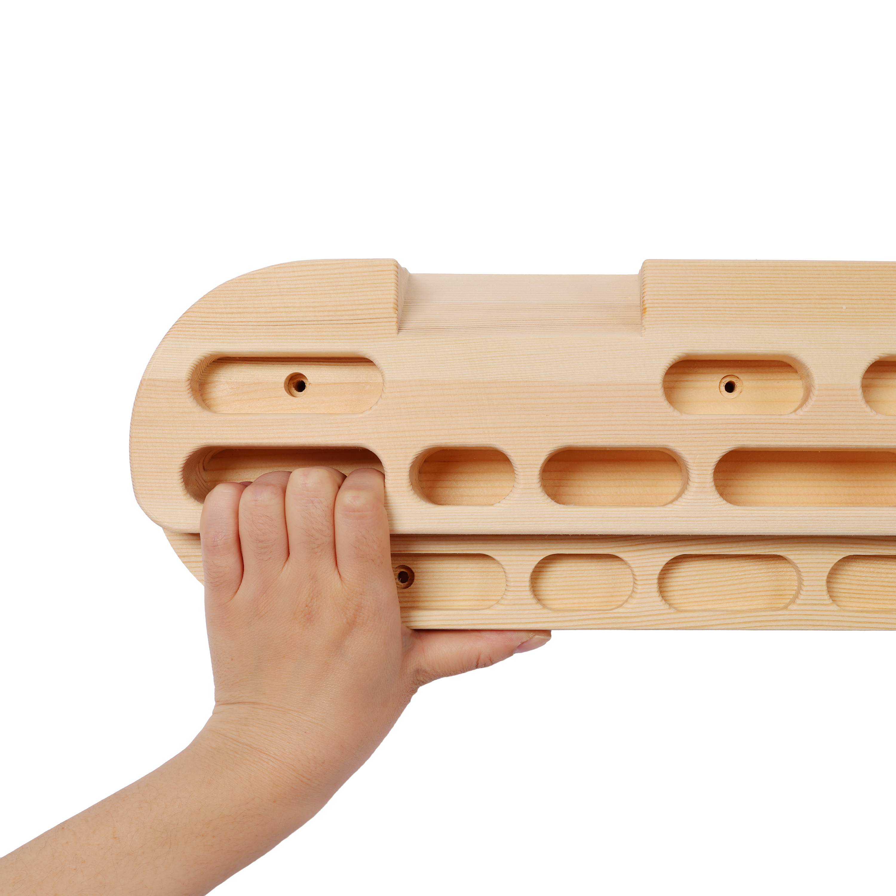 • Featuring a meticulously sanded smooth wood finish, this hangboard ensures friction-optimized gripping for extended holds while eliminating the risk of scratches or abrasions. The premium surface treatment not only enhances training comfort but also maintains grip consistency, making it ideal for prolonged sessions that demand both stamina and precision.