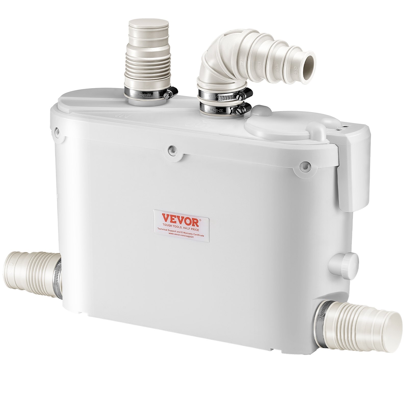 One Pump for All: This sewage disposal pump, designed for small spaces, features 4 water inlets (1 x 89 mm and 3 x 40 mm), easily connecting to sinks, showers, and bathtubs, making it suitable for various bathroom setups